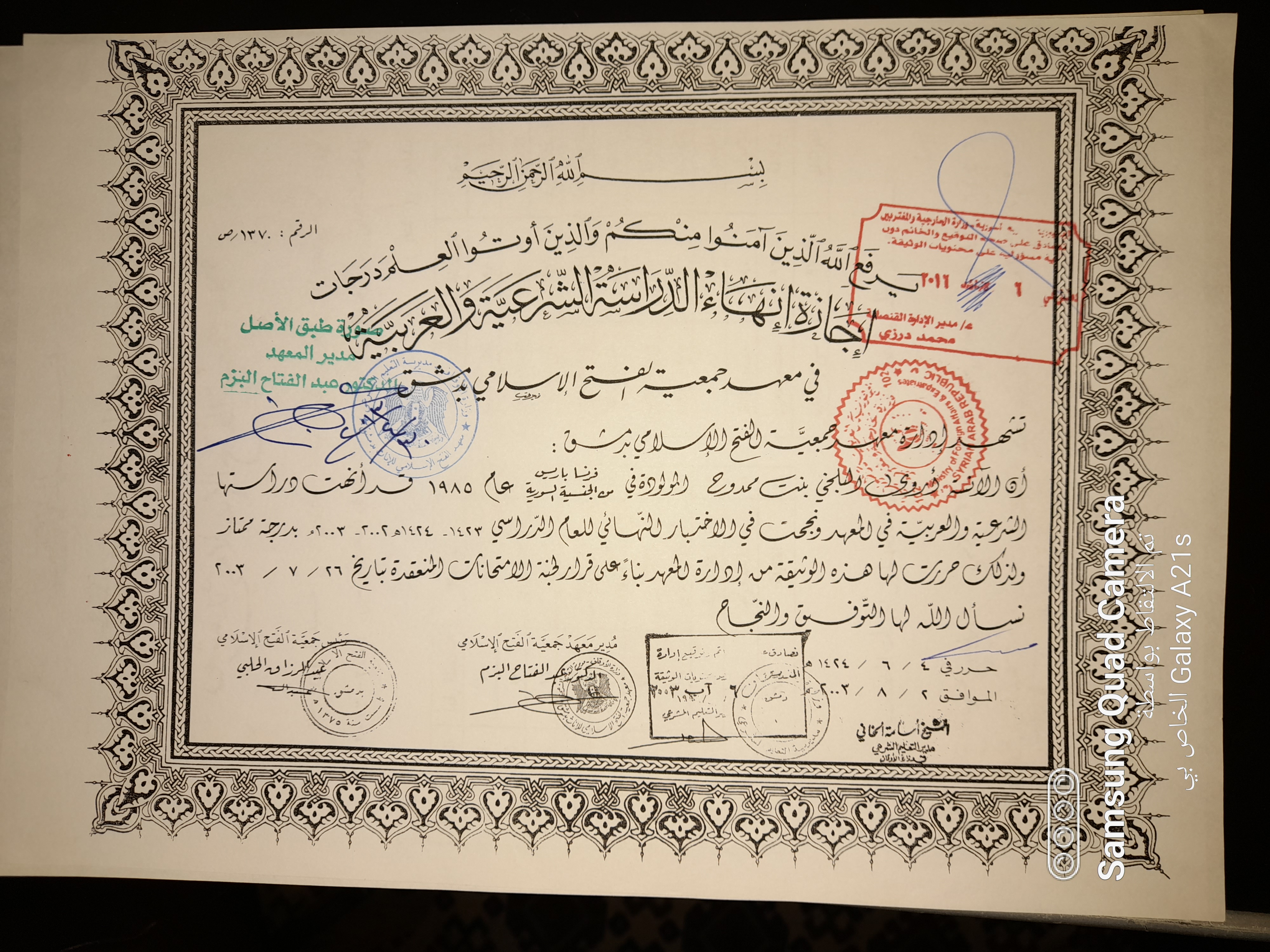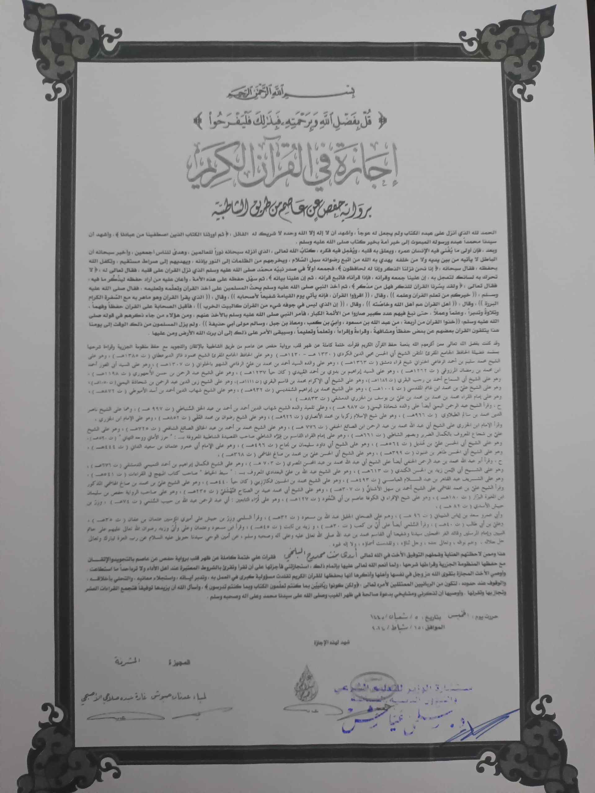أنا و بفضل الله حاصلة على إجازة بسند في القرآن الكريم وعلم التجويد.